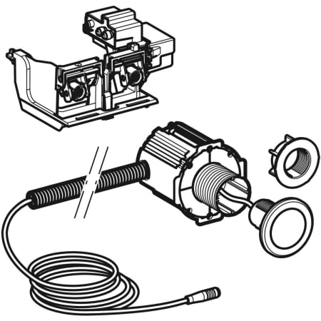 - También disponible con funcionamiento mediante batería; "Sistema de descarga Geberit para inodoros con accionamiento de descarga electrónico, servicio a batería, doble descarga, botón infrarrojo serie 10" (n.º de art. 115.937.SN.6 ), consultar